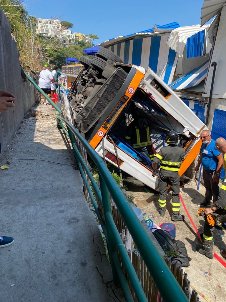 Capri, autobus di linea precipita in scarpata: le foto dei soccorsi