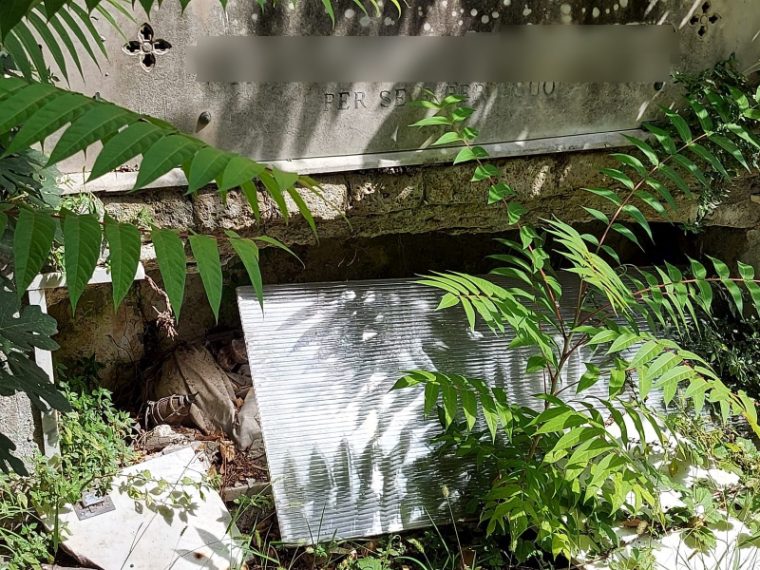 Degrado al Cimitero di Poggioreale, muro di cinta sgretolato in più punti, cornicioni delle cappelle pericolanti, tombe aperte con resti dei defunti in bella mostra, vegetazione ovunque. Denuncia dell'avvocato Gennaro Esposito, presidente del comitato Vivibilità Cittadina di Napoli.
