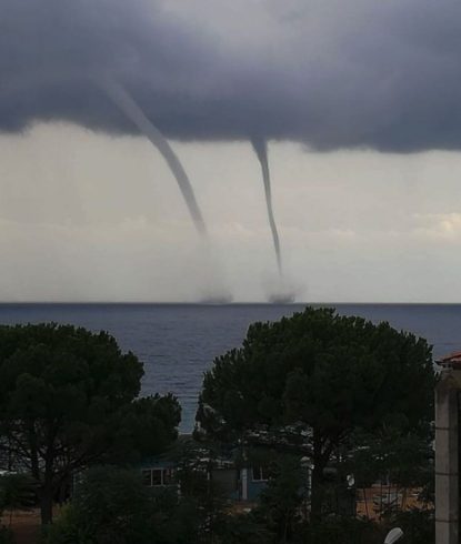 Due trombe marine che si avvicinano e quasi si toccano a largo di Siderno, Locri e Marina di Gioiosa Ionica. Solo uno spettacolo naturale per fortuna che non ha provocato danni.