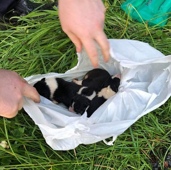 Una busta di plastica abbandonata e piena di cuccioli; le immagini, diventate virali, sono state immortalate in Irlanda. All'interno tre cuccioli di collie appena nati, che poi sono stati affidati alle cure di un veterinario.