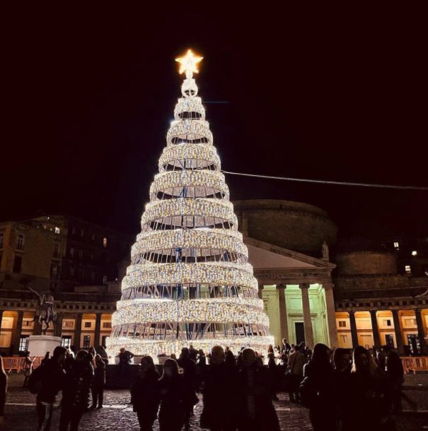 Acceso l'albero di Natale in piazza del Plebiscito a Napoli.