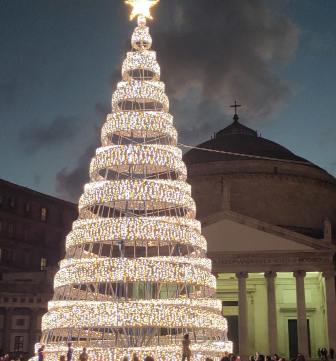 Acceso l'albero di Natale in piazza del Plebiscito a Napoli.