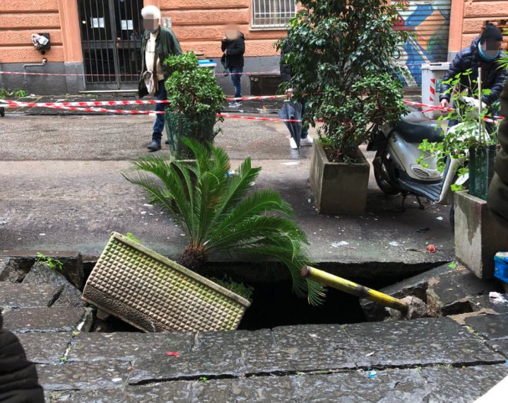Maltempo a Napoli, voragine in via Macedonio Melloni