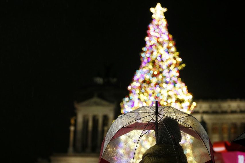 Il centro di Roma si accende con l’inaugurazione dell’albero di Natale a Piazza Venezia e l’accensione delle luminarie di via del Corso.
