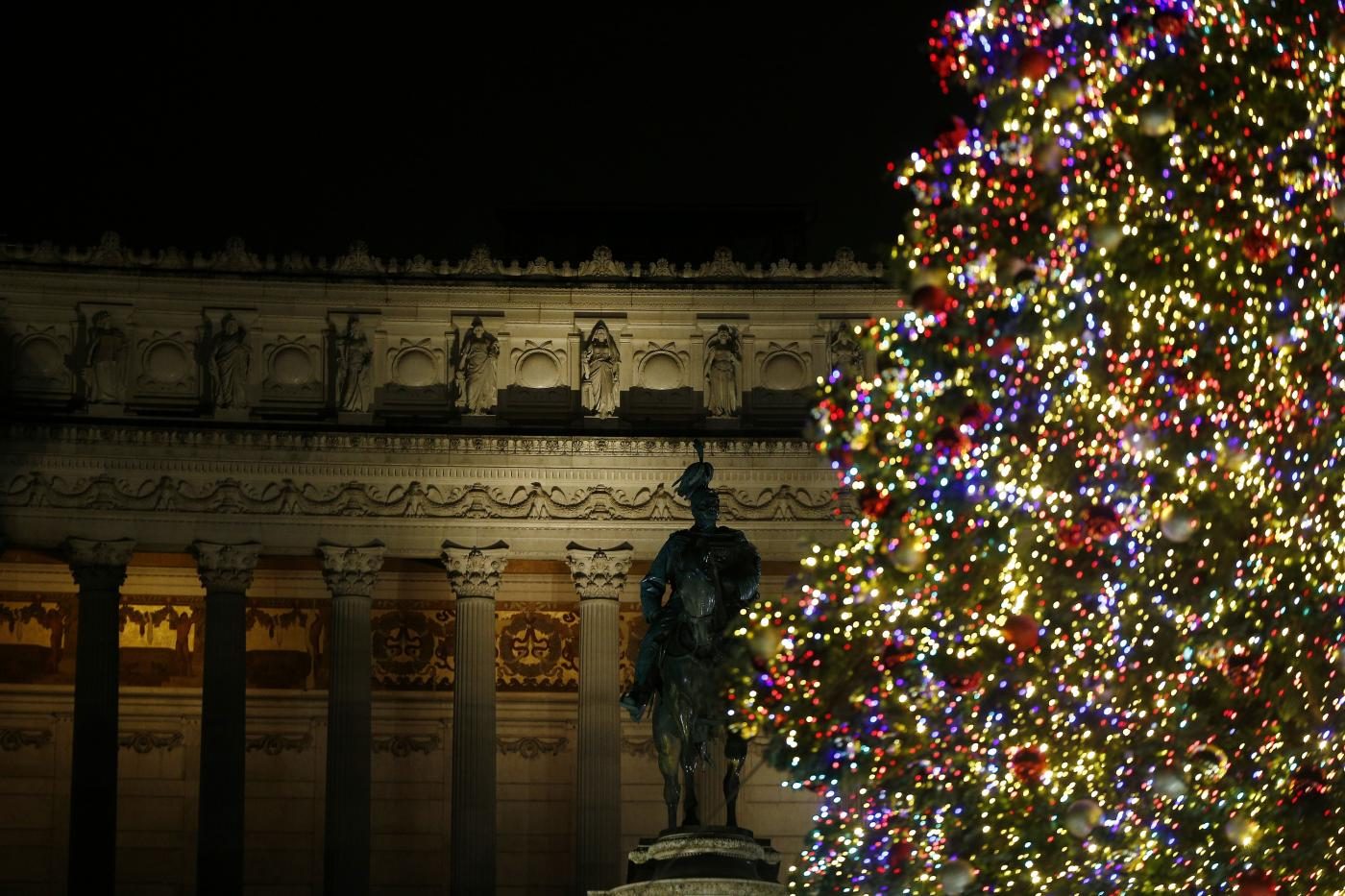 Il centro di Roma si accende con l’inaugurazione dell’albero di Natale a Piazza Venezia e l’accensione delle luminarie di via del Corso.