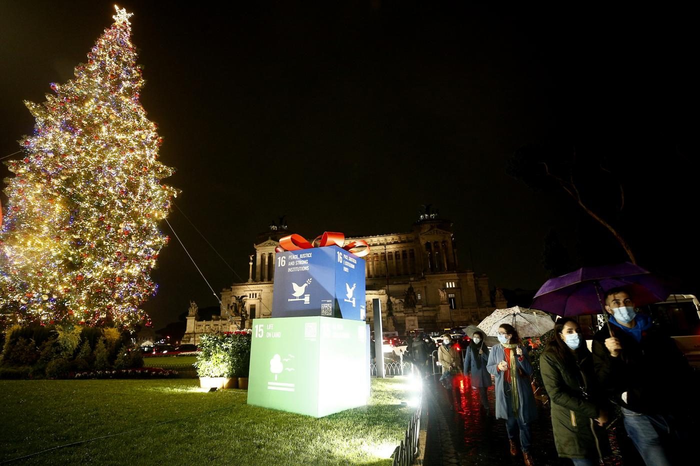 Roma, inaugurato l'albero di Natale in Piazza Venezia