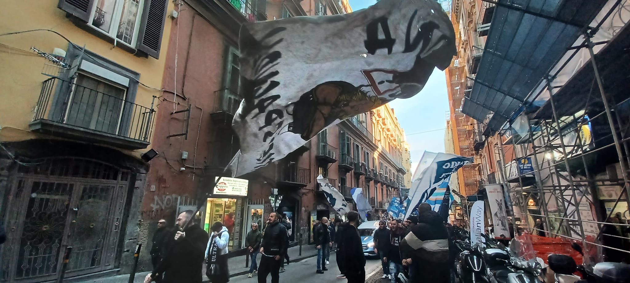 L'omaggio dei tifosi per "zio Padella", al secolo Salvatore Troise, morto a 62 anni prima della partita Napoli-Barcellona.