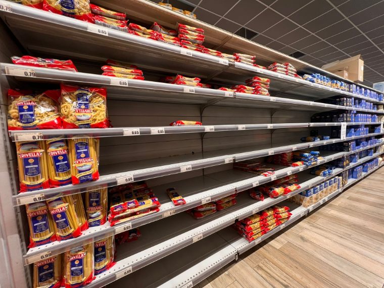 Psicosi guerra, rincari e imminente sciopero degli autotrasportatori causa carao benzina: a Napoli nei supermercati assalto a farina, olio e scatolame / foto Fanpage.it