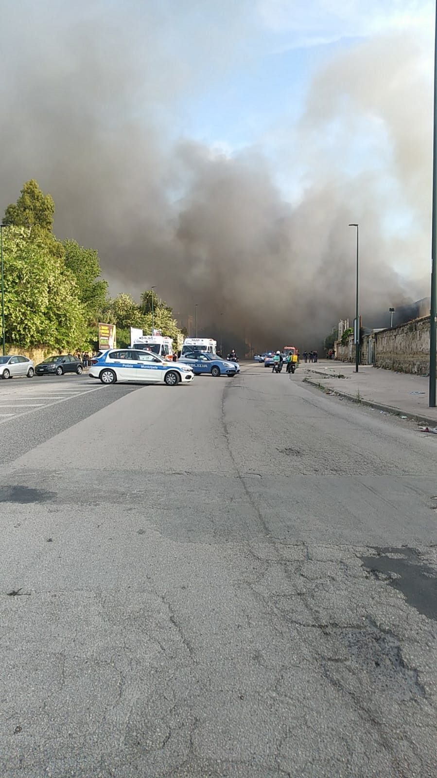 Incendio all'ex campo rom di Gianturco, in fiamme capannoni dell'ex mercato ortofrutticolo