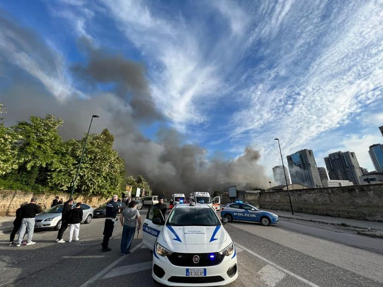 Incendio all'ex campo rom di Gianturco, in fiamme capannoni dell'ex mercato ortofrutticolo