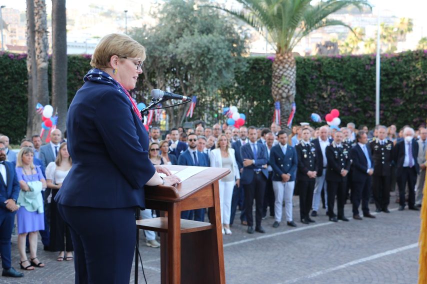 Mercoledì 29 giugno si sono tenute presso la sede del Consolato degli Stati Uniti d'America a Napoli le celebrazioni del 246mo anniversario dell’indipendenza Usa. Alla presenza delle autorità civili e militari italiane, c'è stato l'intervento della Console Generale Mary Avery, il cui incarico, iniziato nel settembre del 2019, terminerà a breve. Nel suo discorso di addio, la console ha salutato la città di Napoli e ha parlato della guerra in Ucraina. Di seguito alcuni passaggi del suo intervento: "Oggi celebriamo l’America, la nostra libertà, la nostra indipendenza. Negli Stati Uniti il quattro luglio, che qui festeggiamo con qualche giorno di anticipo, è un giorno sacro, un giorno storico, di speranza, di promessa, di opportunità, ma anche di memoria e di impegno. Tra meno di un mese terminerà il mio incarico di Console Generale a Napoli, e a chi mi chiederà un bilancio di questi tre anni, non parlerò soltanto di un Sud colpito dalla pandemia. Parlerò di un Sud aperto e inclusivo, in cui sempre più donne si affermano in ruoli apicali, un Sud che fa sentire la propria voce affinché a tutti vengano riconosciuti gli stessi diritti, la stessa dignità, e lo stesso rispetto. Vorrei ricordarvi che gli Stati Uniti saranno sempre al vostro fianco nella difesa dei diritti di tutti. Permettetemi infine di ringraziare tutte le istituzioni, il mondo della cultura, delle imprese, del terzo settore, e tutto il popolo del Sud Italia, per avere espresso piena solidarietà al governo e al popolo Ucraino a seguito dell’aggressione ingiustificata e non provocata da parte della Federazione Russa. Non mi resta adesso che ringraziare, a nome mio e di mio marito Todd, la città di Napoli, il popolo campano e di tutto il Sud Italia per avermi regalato tre anni indimenticabili. E grazie a tutti voi per la vostra attenzione. "
