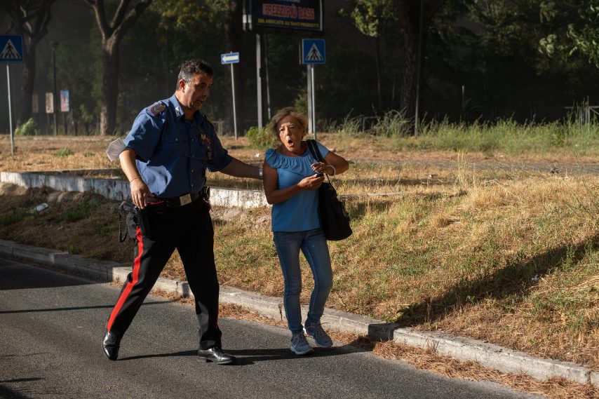 Incendio Roma, persone in fuga dalle abitazioni cercano di mettersi in salvo