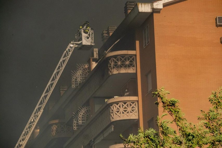 Le drammatiche immagini da Roma: vigili del fuoco in azione per domare le fiamme, mentre le persone evacuano le abitazioni e scappano.