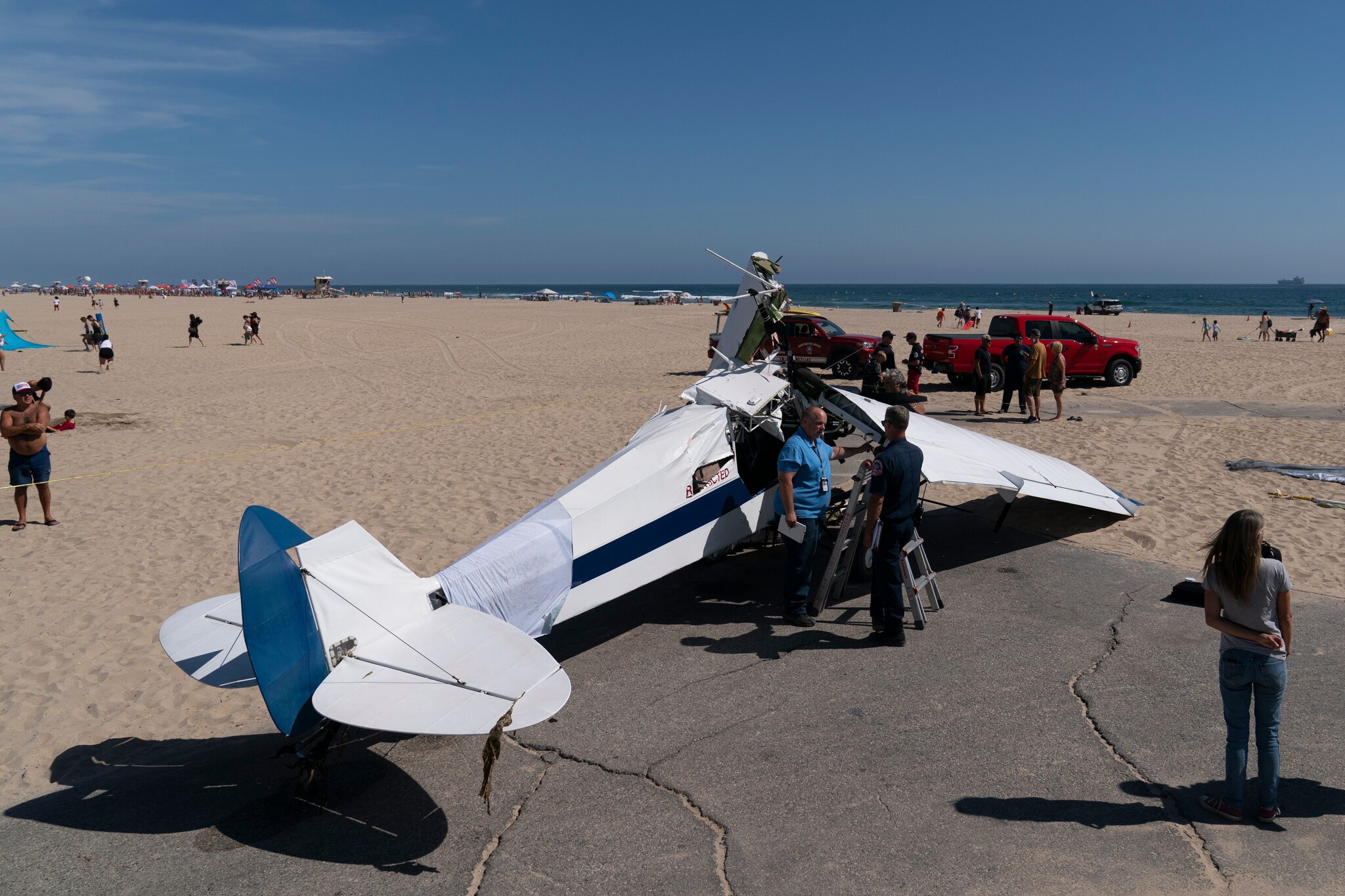 Un piccolo aereo che trainava uno striscione si è schiantato nell'oceano a poche decine di metri dalla celebre Huntington Beach, nel sud della California, mentre era in corso una gara di bagnini. Il pilota è stato portato in ospedale con urti e lividi per precauzione.