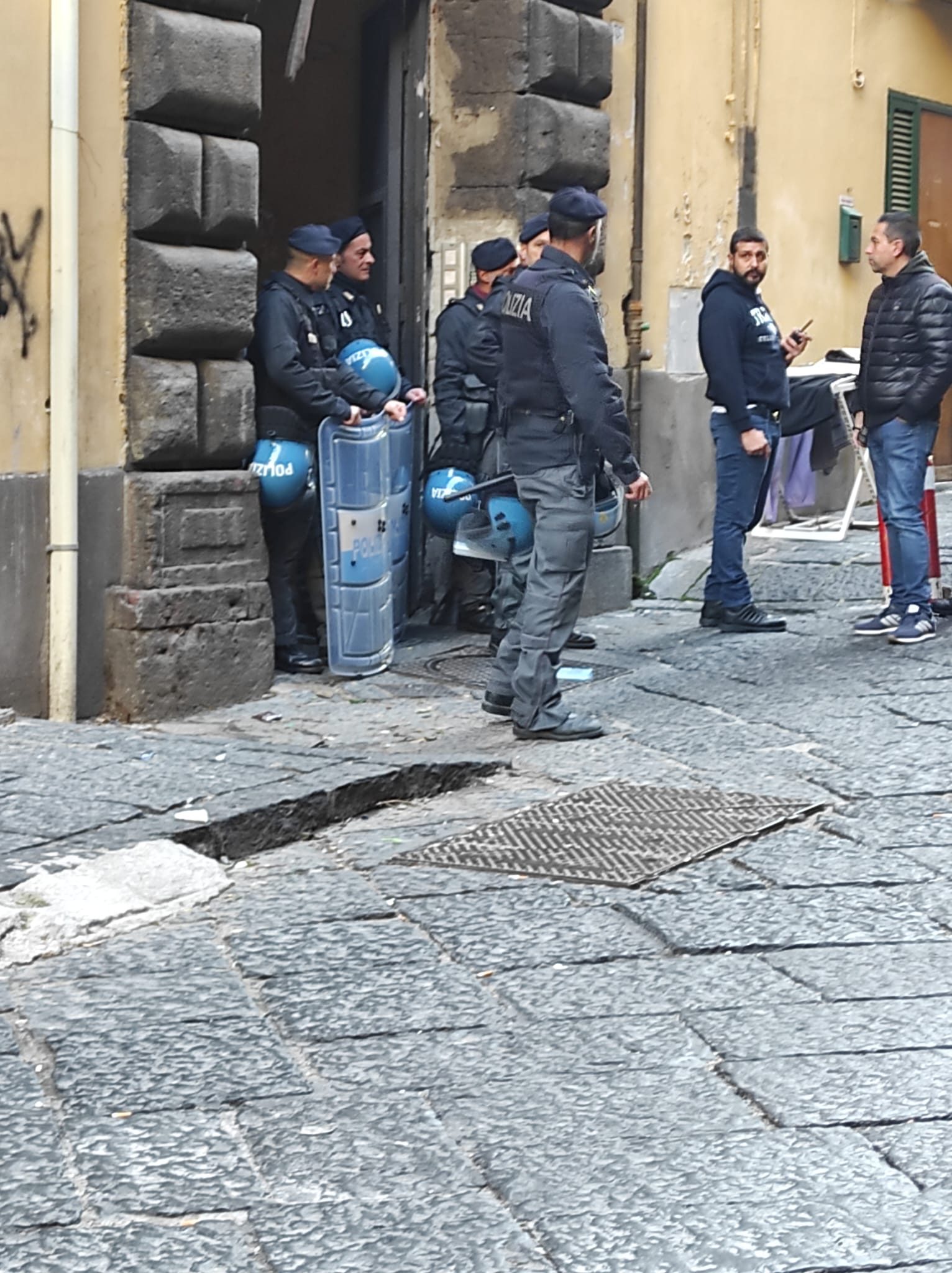 Sgomberato questa mattina dalle forze dell'ordine il palazzo occupato da famiglie legate alla camorra in via Egiziaca a Pizzofalcone, a Napoli.