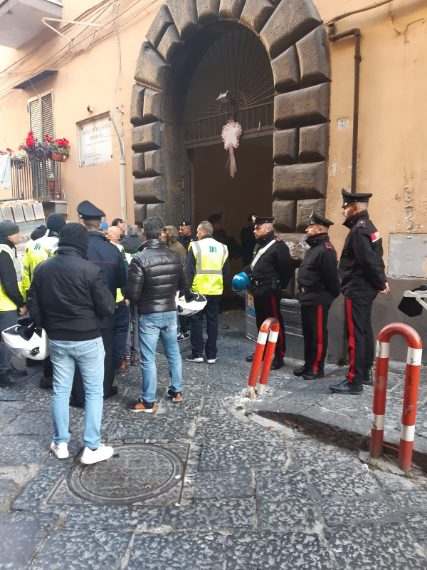 Sgomberato questa mattina dalle forze dell'ordine il palazzo occupato da famiglie legate alla camorra in via Egiziaca a Pizzofalcone, a Napoli.