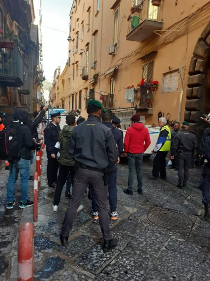 Sgomberato questa mattina dalle forze dell'ordine il palazzo occupato da famiglie legate alla camorra in via Egiziaca a Pizzofalcone, a Napoli.