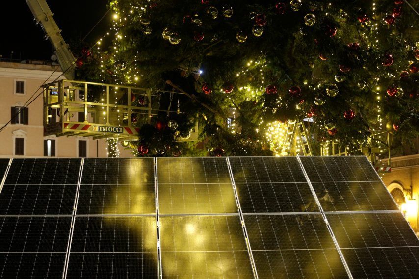 'Spannellacchio': si accende l'albero di Natale di Piazza Venezia alimentato con i pannelli solari