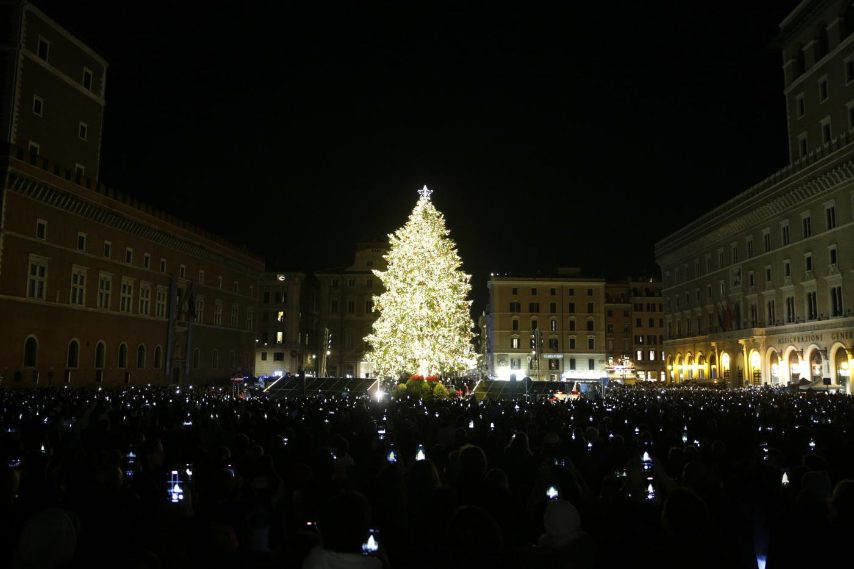 'Spannellacchio': si accende l'albero di Natale di Piazza Venezia alimentato con i pannelli solari