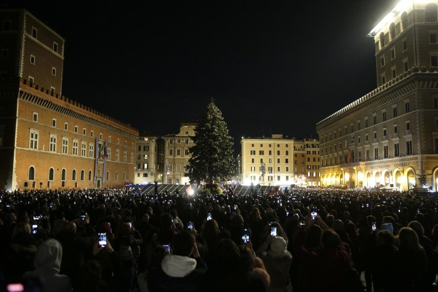 'Spannellacchio': si accende l'albero di Natale di Piazza Venezia alimentato con i pannelli solari