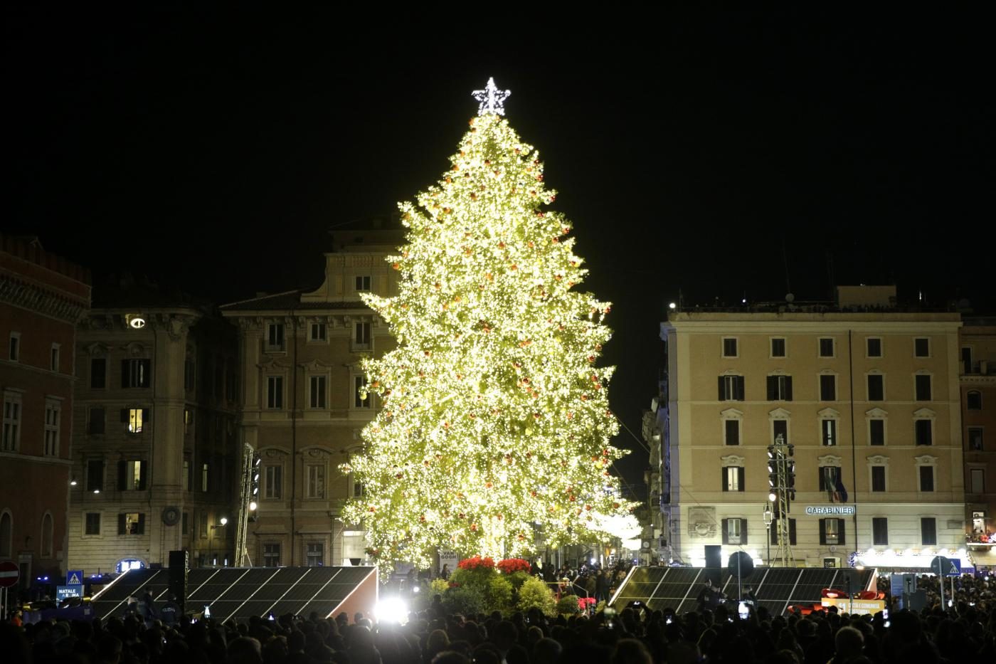 'Spannellacchio': si accende l'albero di Natale di Piazza Venezia alimentato con i pannelli solari