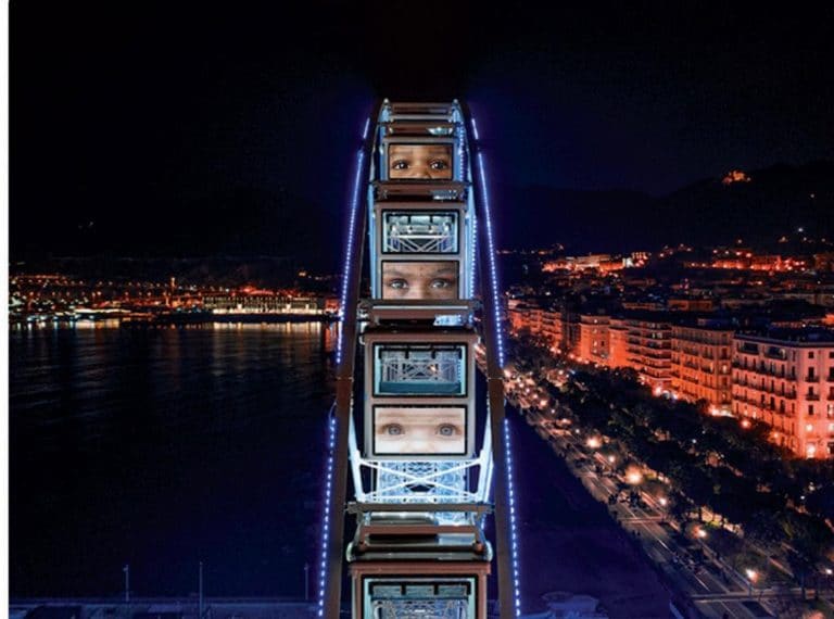 Arriva alla Stazione Marittima di Napoli la ruota panoramica Naples' Wheel. Con i suoi 55 metri di altezza è tra le più alte d'Europa. La ruota dovrebbe essere pronta prima di Natale, condizioni meteo permettendo. Sulle cabine ci sono gli occhi dei bambini della città di Napoli e di varie nazionalità.