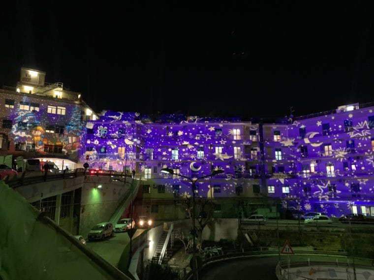 Accese le luci di Natale sugli ospedali Santobono e Pausilipon. Una magia di colori, con alberi, stelle cadenti e notte stellata per allietare le feste della Natività per i bambini ricoverati e il personale sanitario.