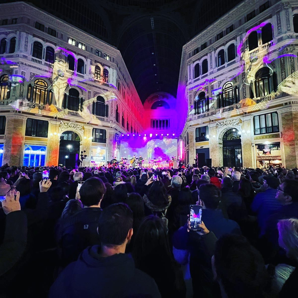 Parte il Capodanno 2023 di Napoli con l'accensione delle luci sul colonnato di piazza del Plebiscito.