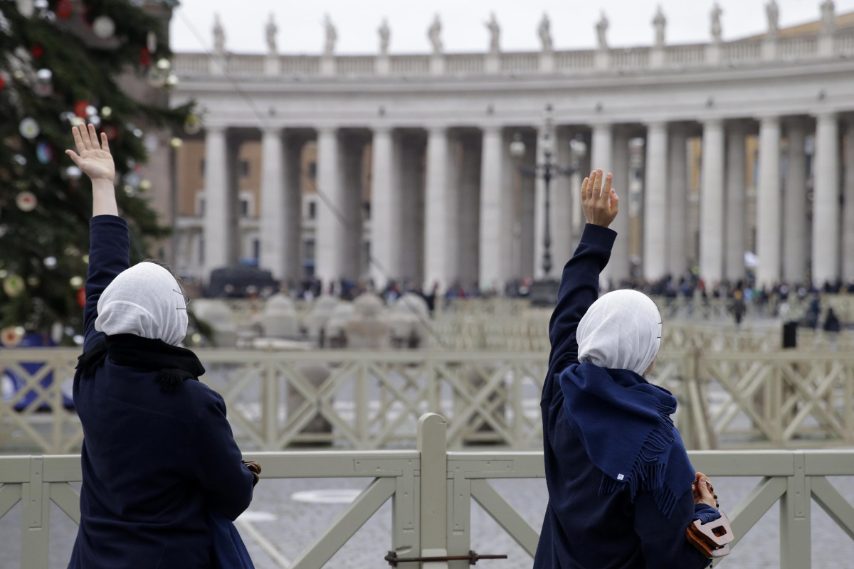 Code lunghissime di persone comuni, fedeli e religiose, arrivate per salutare per l'ultima volta, il papa tedesco.