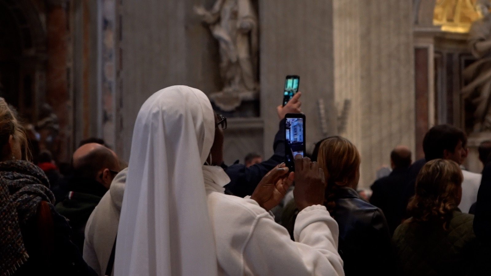 Code lunghissime di persone comuni, fedeli e religiose, arrivate per salutare per l'ultima volta, il papa tedesco.