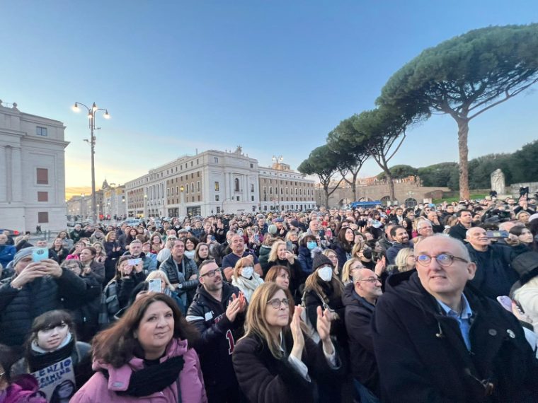 Si sono riuniti per celebrare Emanuela Orlandi, in occasione dei suoi 55 anni dalla nascita. Alla manifestazione, tenutasi questo pomeriggio a Largo Giovanni XXIII, a pochi passi da piazza San Pietro, hanno partecipato decine e decine di persone. Fra loro, il fratello di Emanuela, Pietro e l'avvocata della famiglia Orlandi, Laura Sgro.