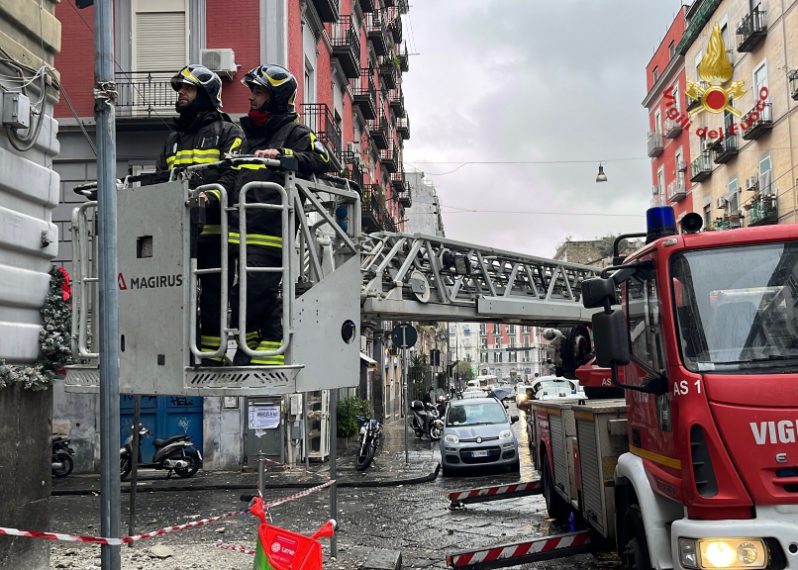 A Napoli voragine ai Camaldoli, tabelloni pubblicitari pericolanti e crolli di calcinacci dai palazzi in diverse strade della città, a causa del maltempo.
