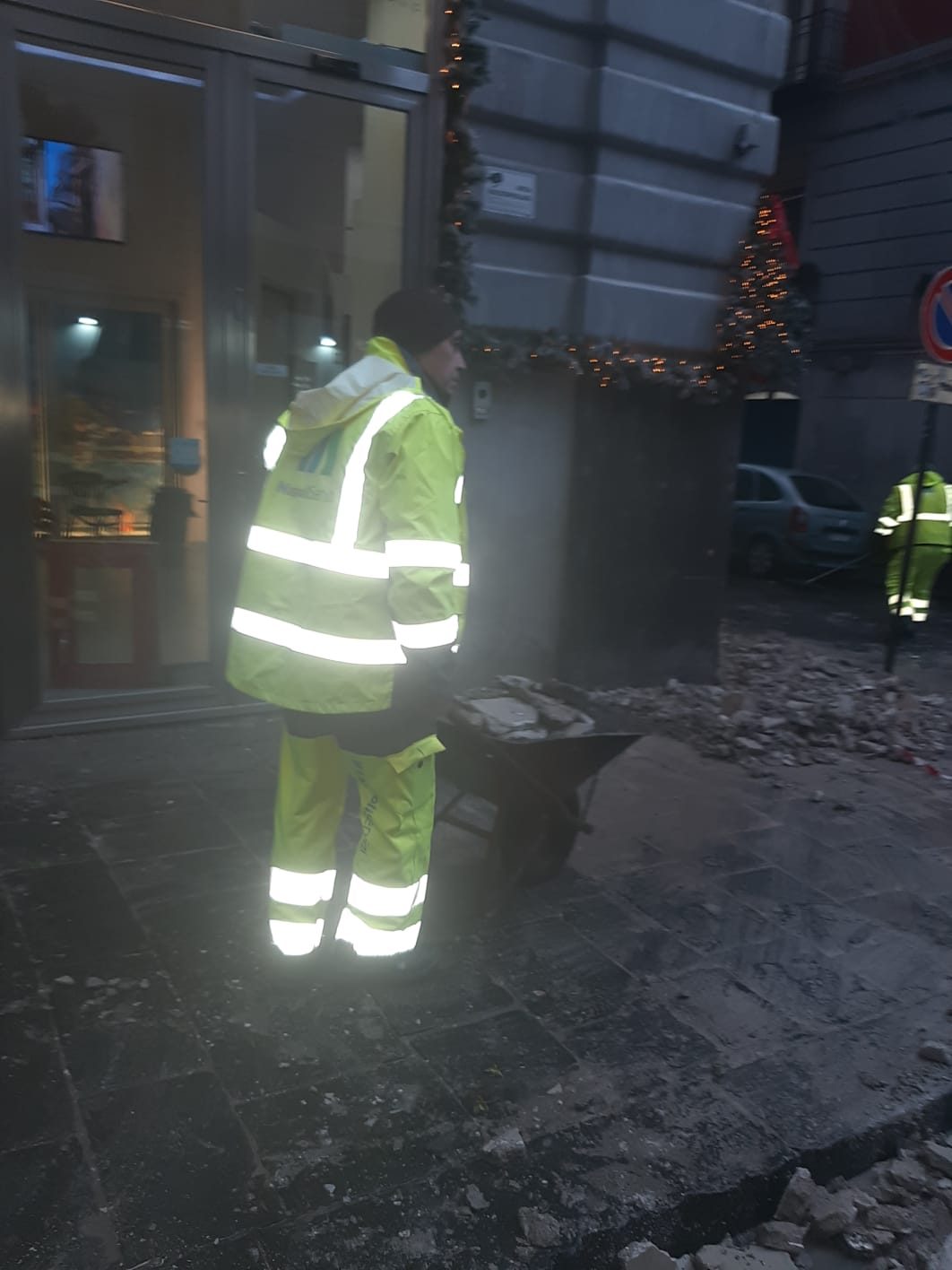 A Napoli voragine ai Camaldoli, tabelloni pubblicitari pericolanti e crolli di calcinacci dai palazzi in diverse strade della città, a causa del maltempo.