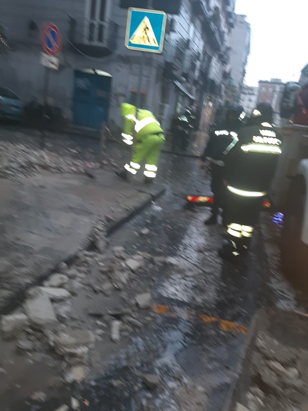 A Napoli voragine ai Camaldoli, tabelloni pubblicitari pericolanti e crolli di calcinacci dai palazzi in diverse strade della città, a causa del maltempo.