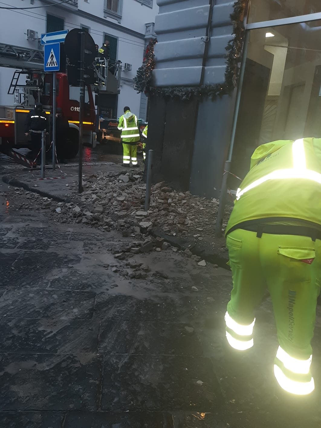 A Napoli voragine ai Camaldoli, tabelloni pubblicitari pericolanti e crolli di calcinacci dai palazzi in diverse strade della città, a causa del maltempo.
