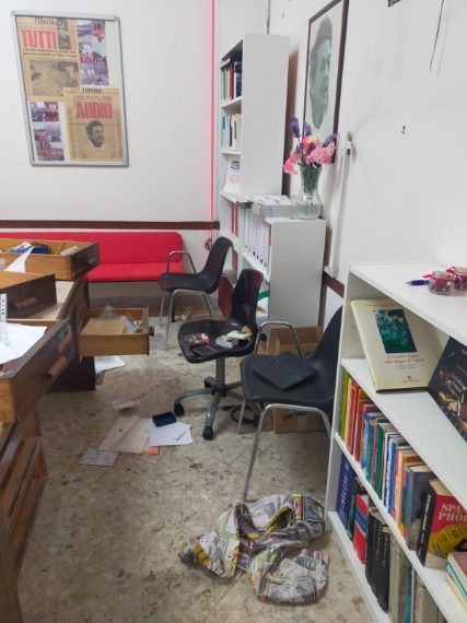 Vandalizzata la sede di Rosso Democratico, dove si trova l'associazione nazionale dei partigiani di Capodimonte, la biblioteca popolare. Il raid è avvenuto nella notte. Danni a porte e uffici.