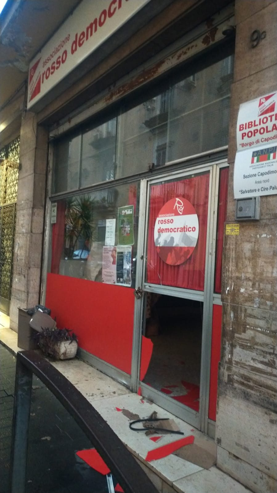 Vandalizzata la sede di Rosso Democratico, dove si trova l'associazione nazionale dei partigiani di Capodimonte, la biblioteca popolare. Il raid è avvenuto nella notte. Danni a porte e uffici.