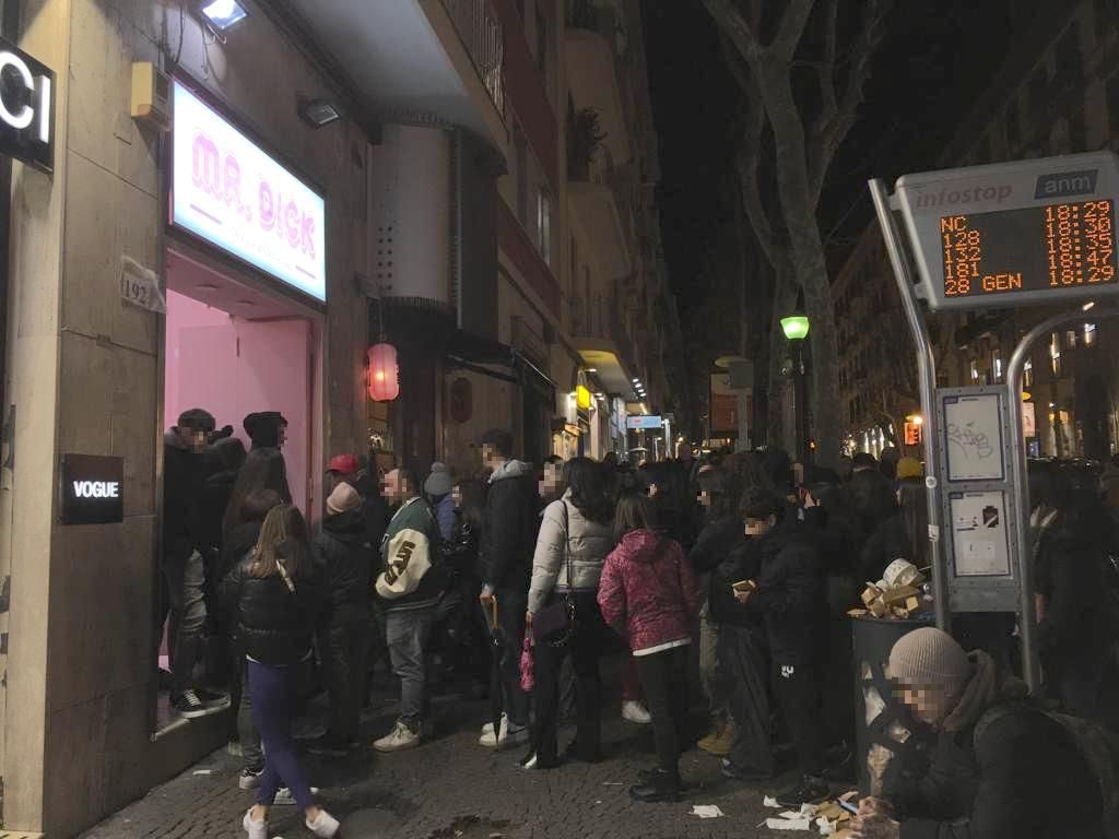 Folla per entrare da Mr Dick al Vomero, la pasticceria sexy che vende dolci a forma di organi genitali. Lunghe code nel weekend allo store di via Scarlatti-via Cilea, per poter acquistare i suoi prodotti. Tra i clienti, tantissimi giovanissimi di 12-15 anni.