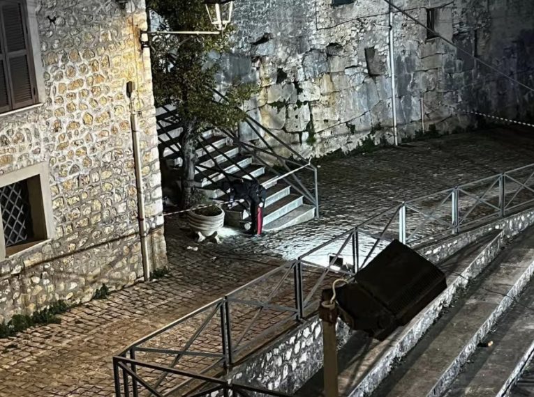 Le immagini mostrano il luogo dove Thomas Bricca è stato ferito a morte da un colpo di pistola alla testa ad Alatri in provincia di Frosinone la sera del 30 gennaio 2023.