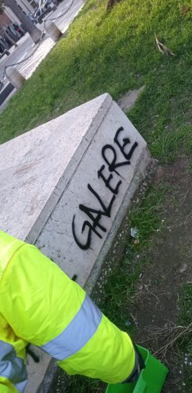 Scritte contro il carcere sono comparse sulla base di marmo del monumento dedicato a Salvo d'Acquisto, il carabiniere eroe vittima del nazismo, affiancate dalla A cerchiata, simbolo del movimento anarchico. Il Comune di Napoli le ha fatte rimuovere.