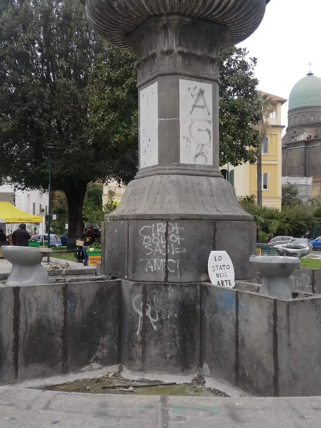 La Fontana degli Incanti a Posillipo abbandonata al degrado: protesta provocatoria con i wc