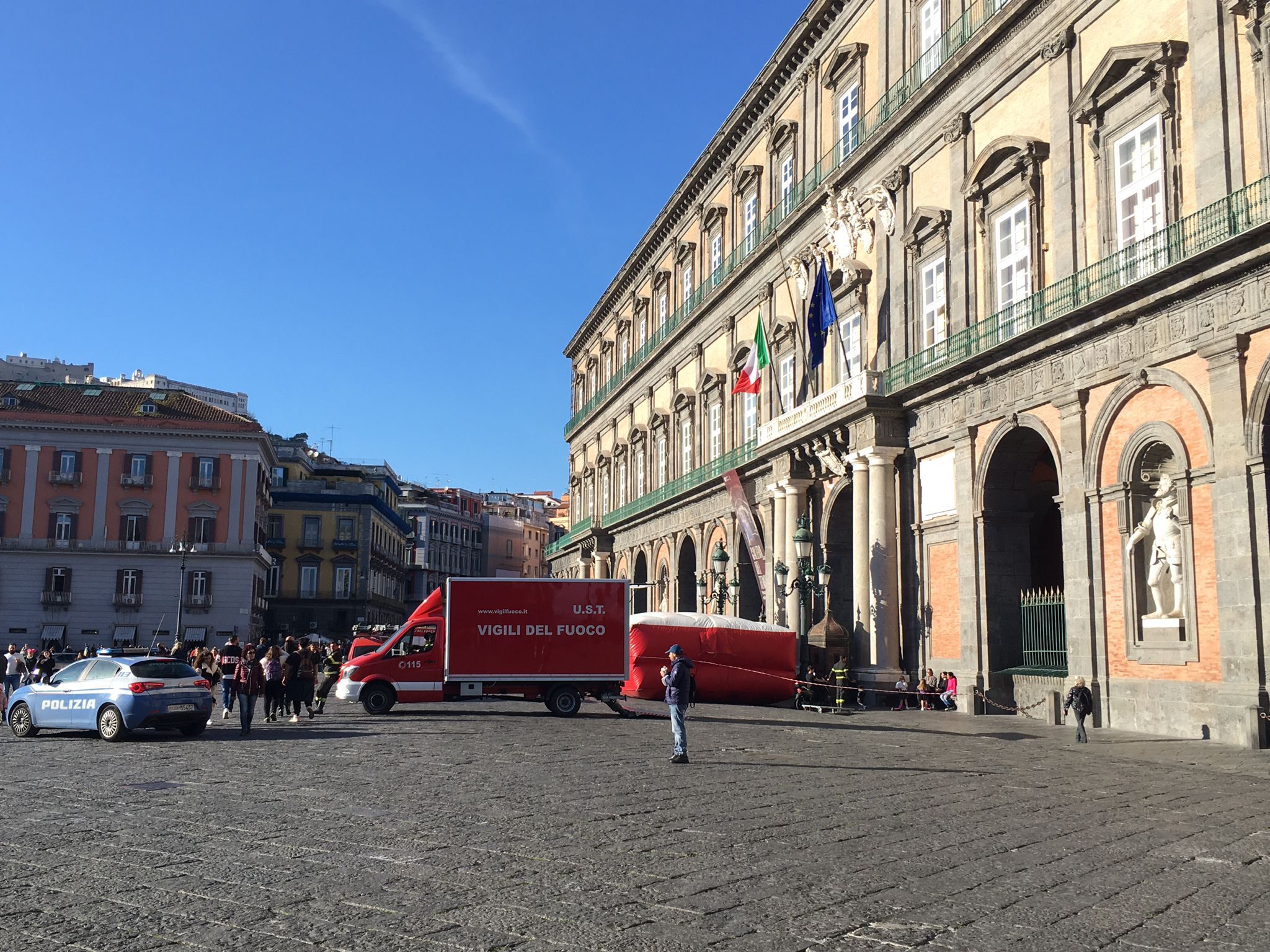 I disoccupati organizzati del Movimento 7 novembre hanno occupato il tetto di Palazzo Reale. La protesta contro i tagli al Reddito di Cittadinanza.