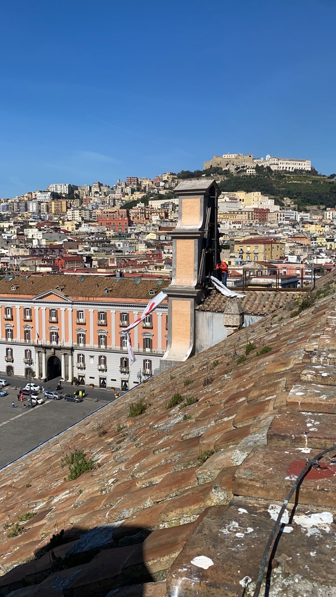 I disoccupati organizzati del Movimento 7 novembre hanno occupato il tetto di Palazzo Reale. La protesta contro i tagli al Reddito di Cittadinanza.