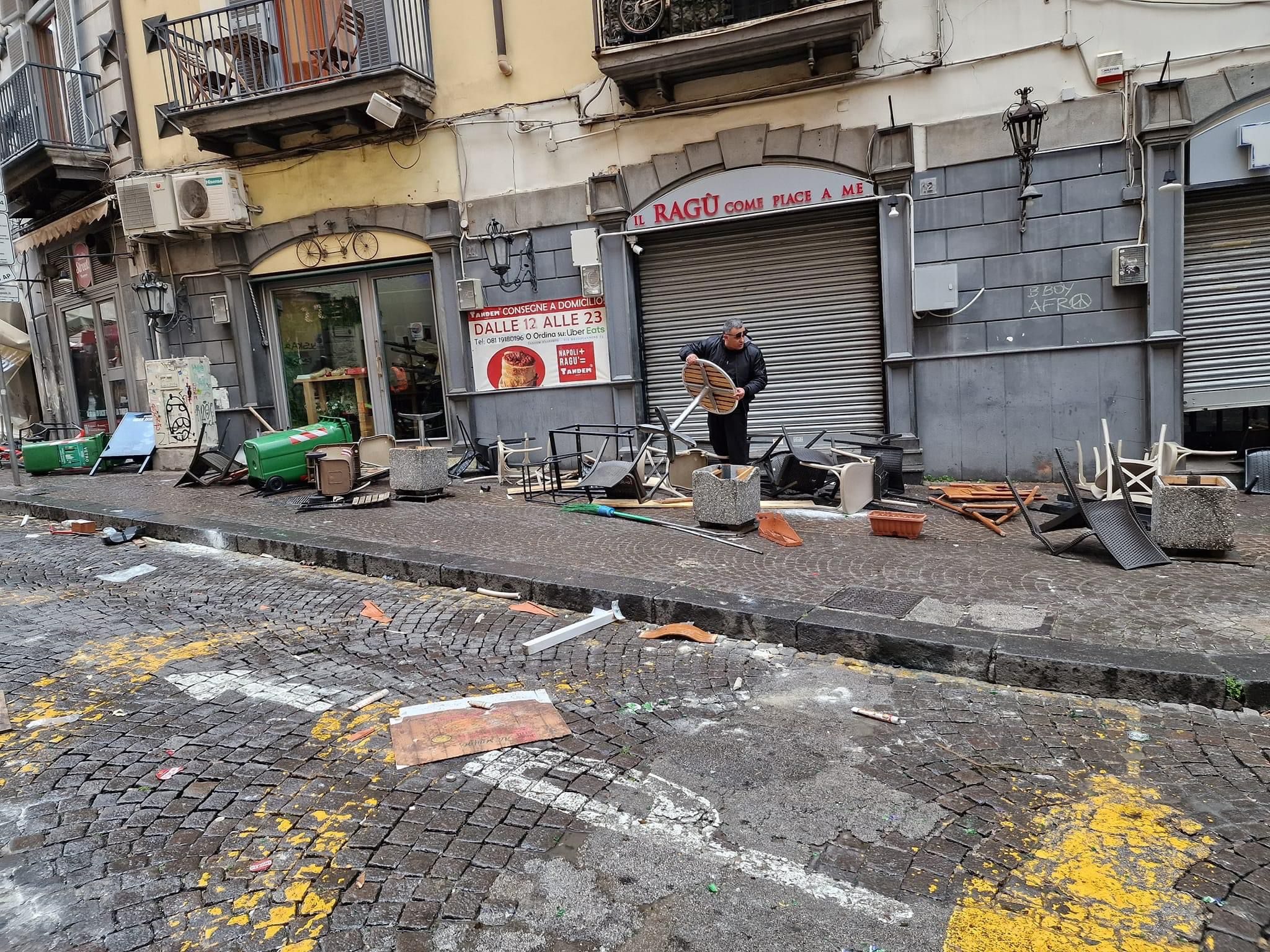 Danni ingenti a negozi e auto dopo gli scontri a Napoli