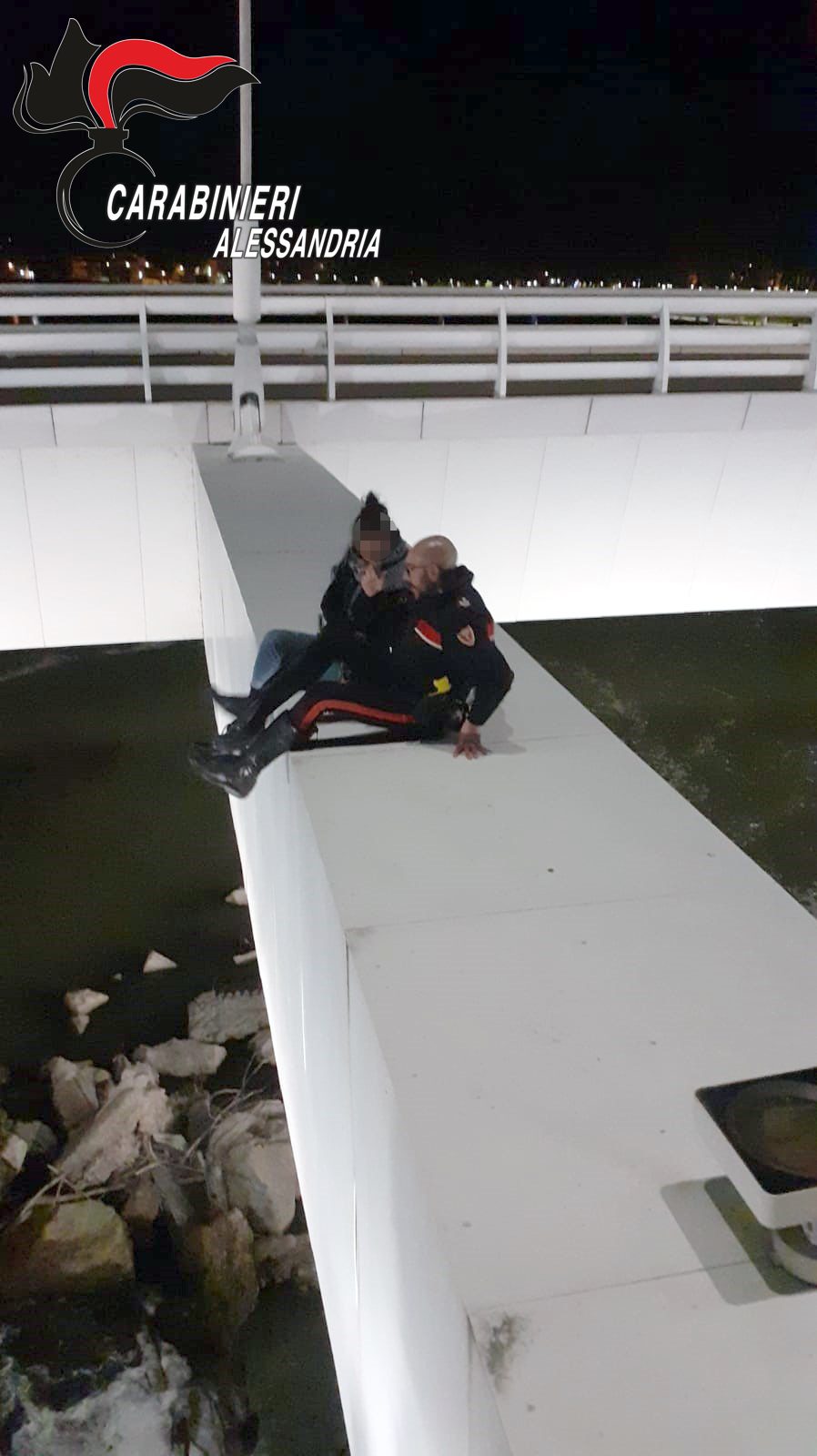 Le foto del salvataggio di un carabiniere di Alessandria che ha sventato un suicidio parlando con una ragazza che minacciava di lanciarsi nel vuoto