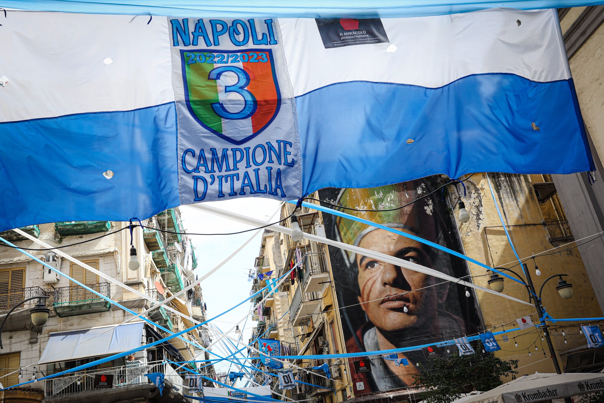 Lo scudetto a Napoli è atteso da oltre trent'anni e festeggiato da almeno quattro mesi: è da gennaio che i tifosi azzurri addobbano strade e vicoli e ridipingono muri e scale.