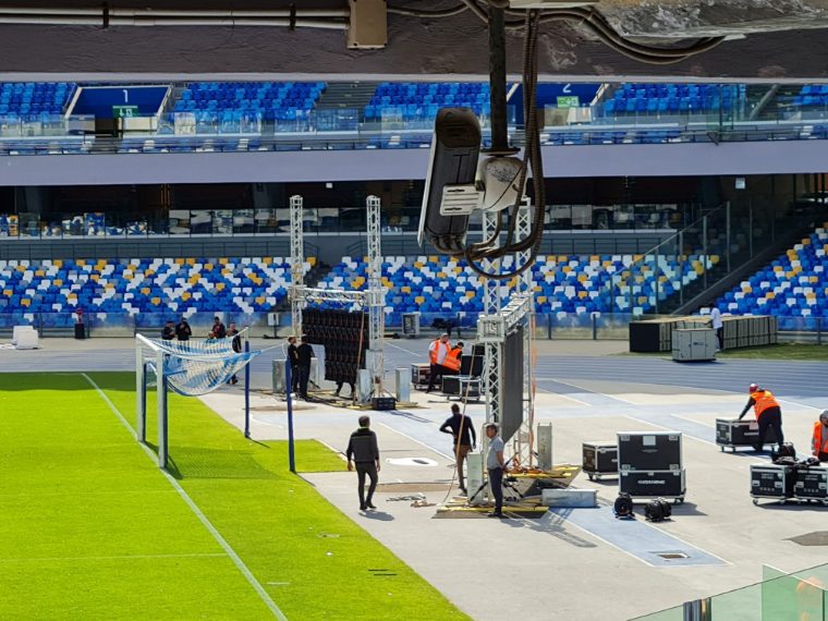 Iniziate le operazioni di montaggio degli 8 maxi-schermi allo Stadio Diego Armando Maradona di Napoli, dove giovedì 5 maggio sarà trasmessa in diretta la partita Udinese-Napoli, che potrebbe assegnare il terzo scudetto alla squadra azzurra dopo 33 anni.