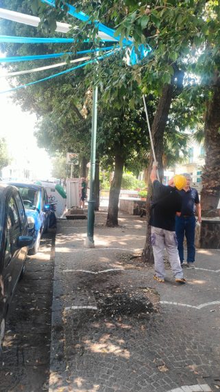 Il Comune prosegue nelle operazioni di rimozione di striscioni e addobbi attaccati in tutta la città per festeggiare lo scudetto del Napoli; gli operai della NapoliServizi interverranno soltanto per quelli legati agli alberi, gli altri dovranno essere staccati dai privati cittadini proprietari di aree private e condomini dove sono stati legati.