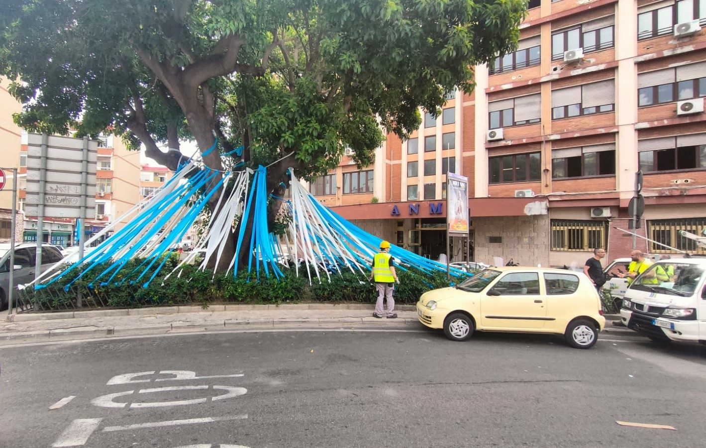 Partita la rimozione degli striscioni per lo scudetto a Napoli: solo quelli legati agli alberi