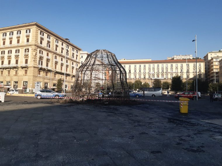 Napoli, la Venere degli Stracci prima, durante e dopo l'incendio che l'ha distrutta